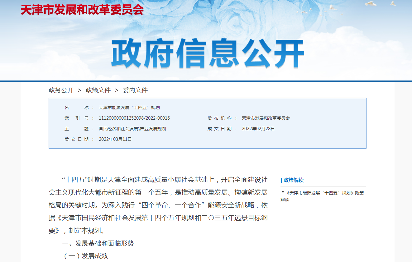2020年,天津市以煤炭為主的能源結構逐漸向多元化、清潔化方向轉變,非化石能源占比由2.7%提高到7.7%。123萬戶農(nóng)村居民清潔取暖改造完成。