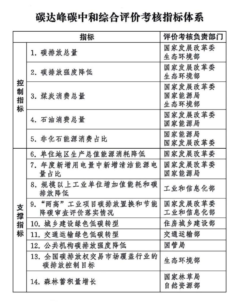《碳達(dá)峰碳中和綜合評(píng)價(jià)考核辦法》全文如下。