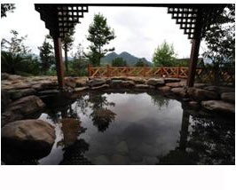 貴州黃平浪洞溫泉風(fēng)景黃平浪洞森林溫泉度假山莊位于貴州省黔東南州黃平北面浪洞鄉(xiāng)溫水塘村,處于兩州一市交界(黔東南州、黔南州和遵義市),更是處在舞陽(yáng)河國(guó)家級(jí)風(fēng)景名勝區(qū)范圍內(nèi),具有較好好區(qū)位優(yōu)勢(shì)。四周依山傍水,原始植被保存良好,是天然的氧吧。浪洞溫泉在100平方米范圍內(nèi)由5~7年泉眼平地,噴涌而出,日流量每天1000噸左右。溫泉無(wú)色,甜味,井口水溫49℃,根據(jù)SI02含量計(jì)算,推測(cè)靠巖面附近溫度可達(dá)60℃,按國(guó)家礦泉水溫度分類(lèi)標(biāo)準(zhǔn),為高熱礦泉水(42-100℃)。該溫泉地?zé)崴?/a>化學(xué)類(lèi)型為HCO3-NA,屬弱堿性(PH=8),低硬度、低礦化度的極軟水,符合飲用水標(biāo)準(zhǔn)。